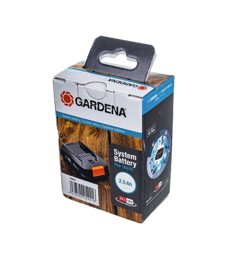Необходимую для создания идеального сада аккумуляторными садовыми инструментами GARDENA мощность обеспечит аккумулятор GARDENA POWER FOR ALL PBA 18V/45. Он даст вам мощную и долговечную энергию для всех работ, которые необходимо выполнять в саду.