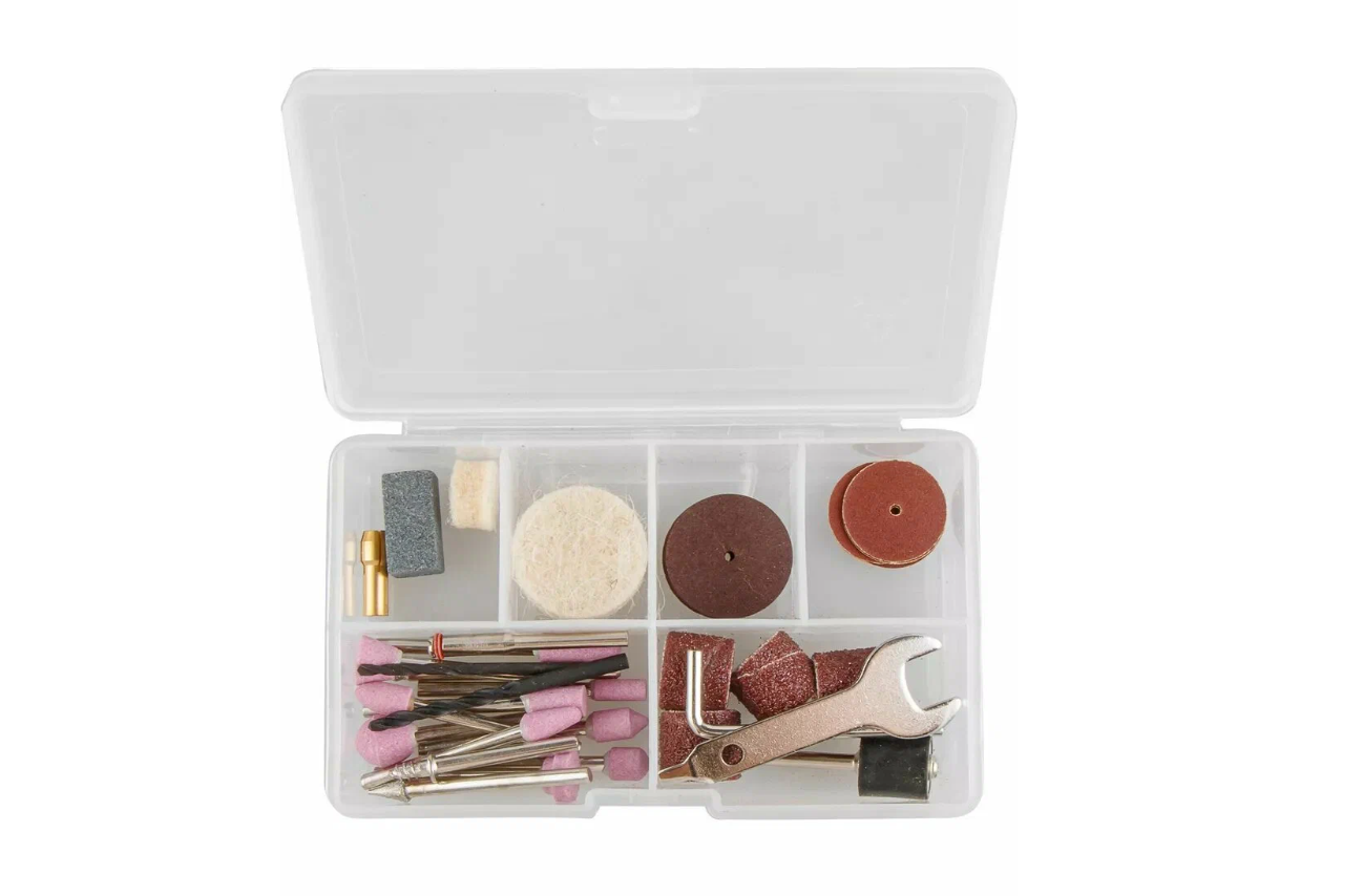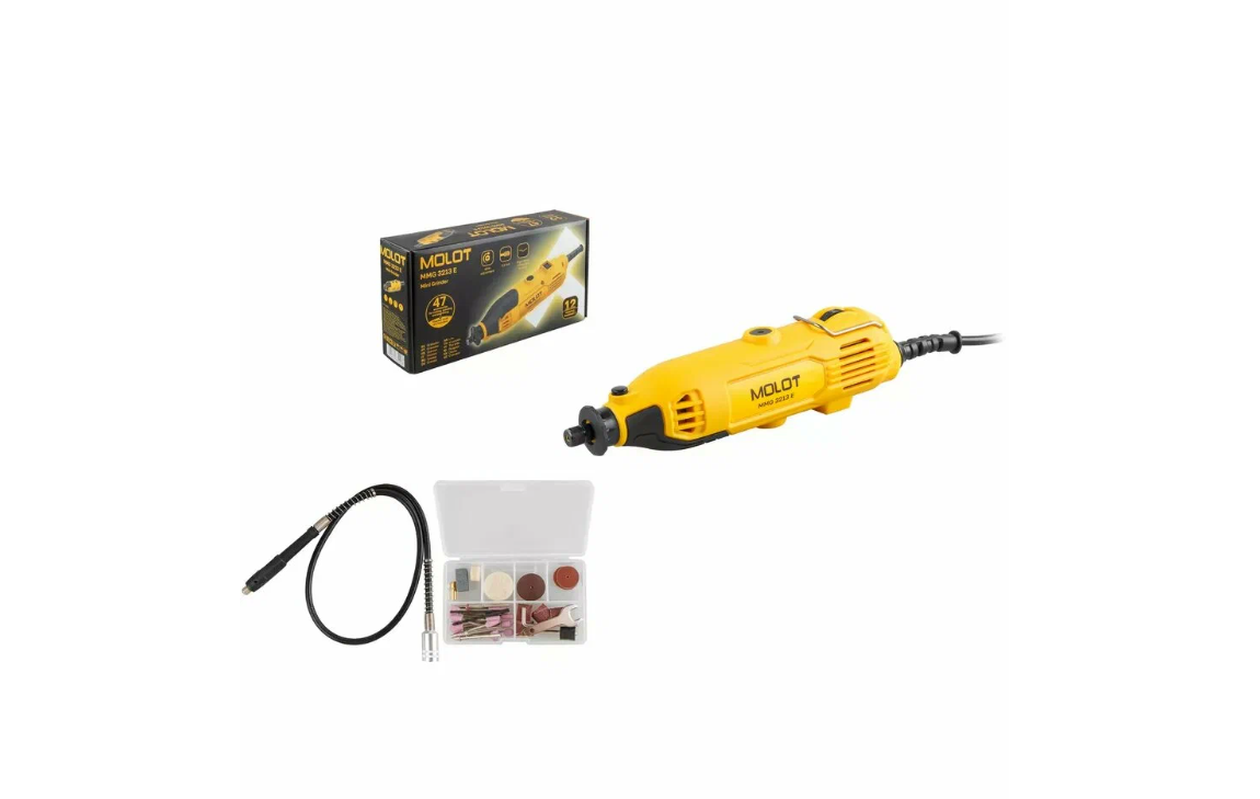 Гравер электрический MOLOT с насадками в кейсе – это универсальный инструмент для выполнения различных задач по обработке материалов. Мощный 135-ваттный двигатель с регулировкой оборотов от 8000 до 33000 об/мин обеспечивает точность и эффективность работы. В комплект входит 25 насадок, которые позволяют выполнять гравировку, шлифовку, полировку и резку различных материалов. Гибкий вал расширяет возможности гравера, позволяя работать в труднодоступных местах. Гравер поставляется в удобном кейсе, который обеспечивает надежное хранение и транспортировку инструмента и насадок. Этот гравер станет незаменимым помощником для домашних мастеров, ремонтных мастерских и профессионалов, которым требуется точный и надежный инструмент для обработки материалов.