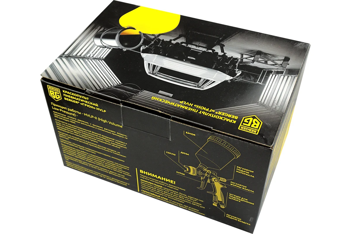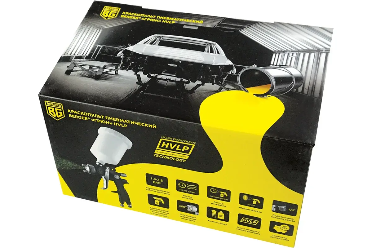 Пневматический краскопульт Berger BG ГРЮН HVLP 1.4 мм BG1377 предназначен для нанесения лакокрасочных материалов на различную поверхность.