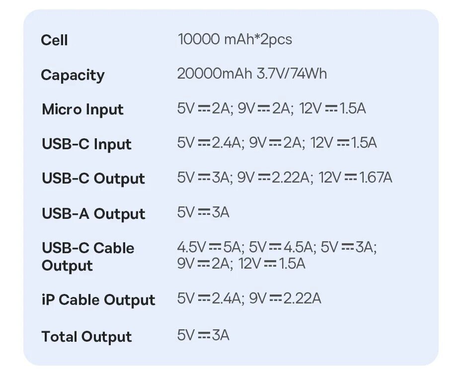 Ёмкость аккумулятора: 20000mah