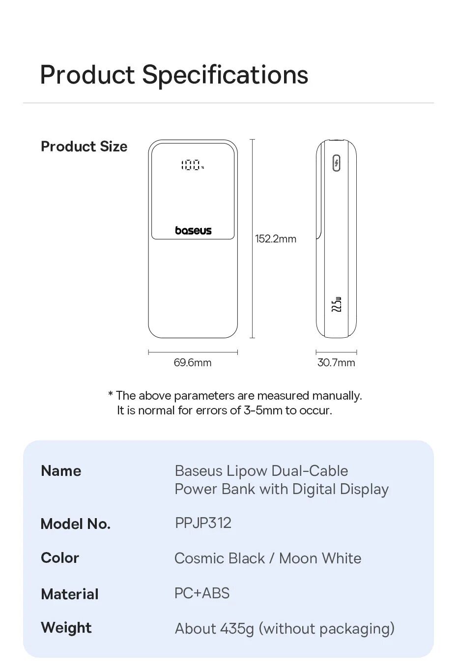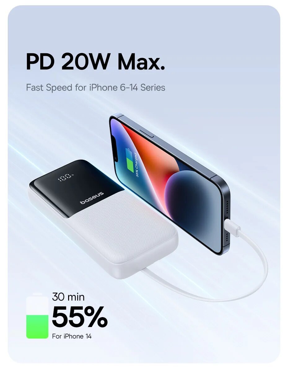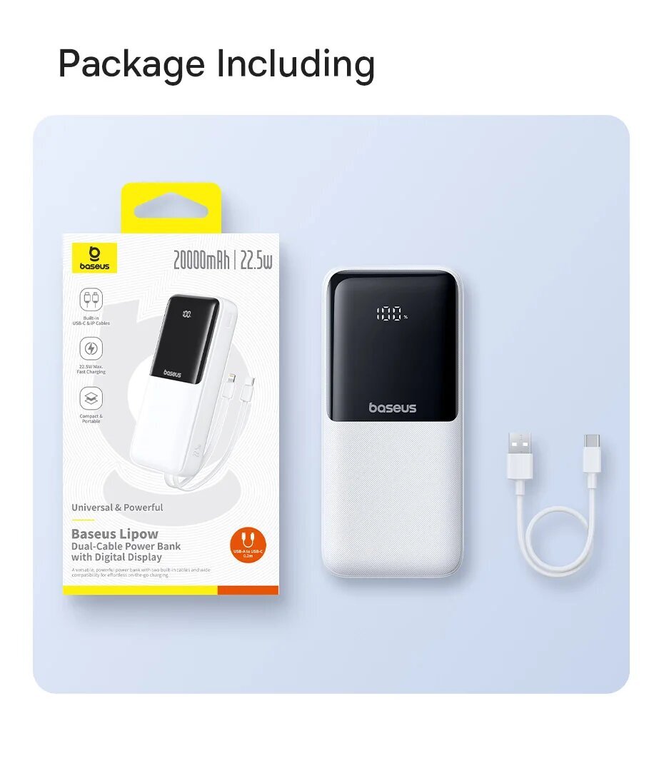 Двухкабельный блок питания Baseus Lipow с цифровым дисплеем 20000 мАч