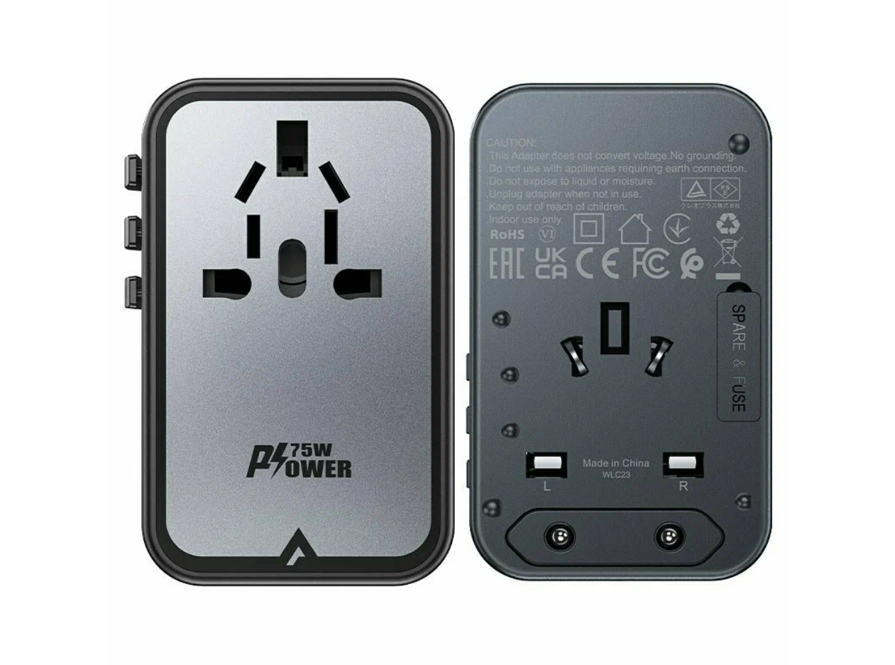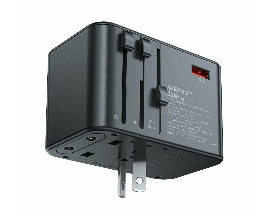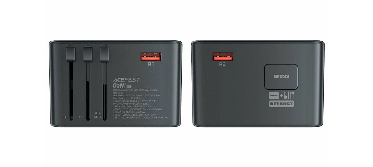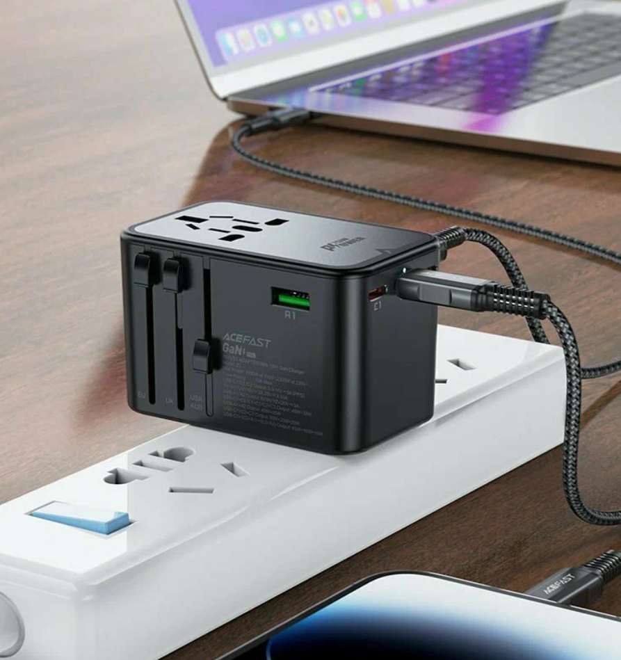 Многофункциональное зарядное устройство ACEFAST Z1 PD75W GaN сочетает в себе розетку переменного тока и пять скоростных портов USB, обеспечивая универсальное решение для зарядки и питания нескольких устройств одновременно. Благодаря GaN-технологии устройство остаётся компактным, энергоэффективным и безопасным даже при высокой нагрузке.