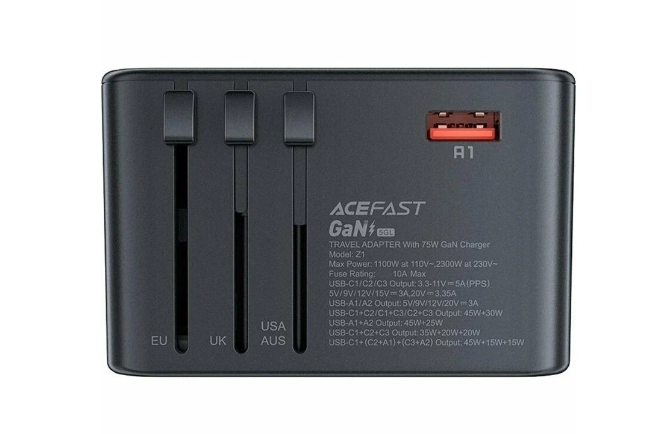 Зарядное устройство ACEFAST Z1 GaN PD75W, многофункциональное, с быстрой зарядкой, серое (AF-Z1-GY)