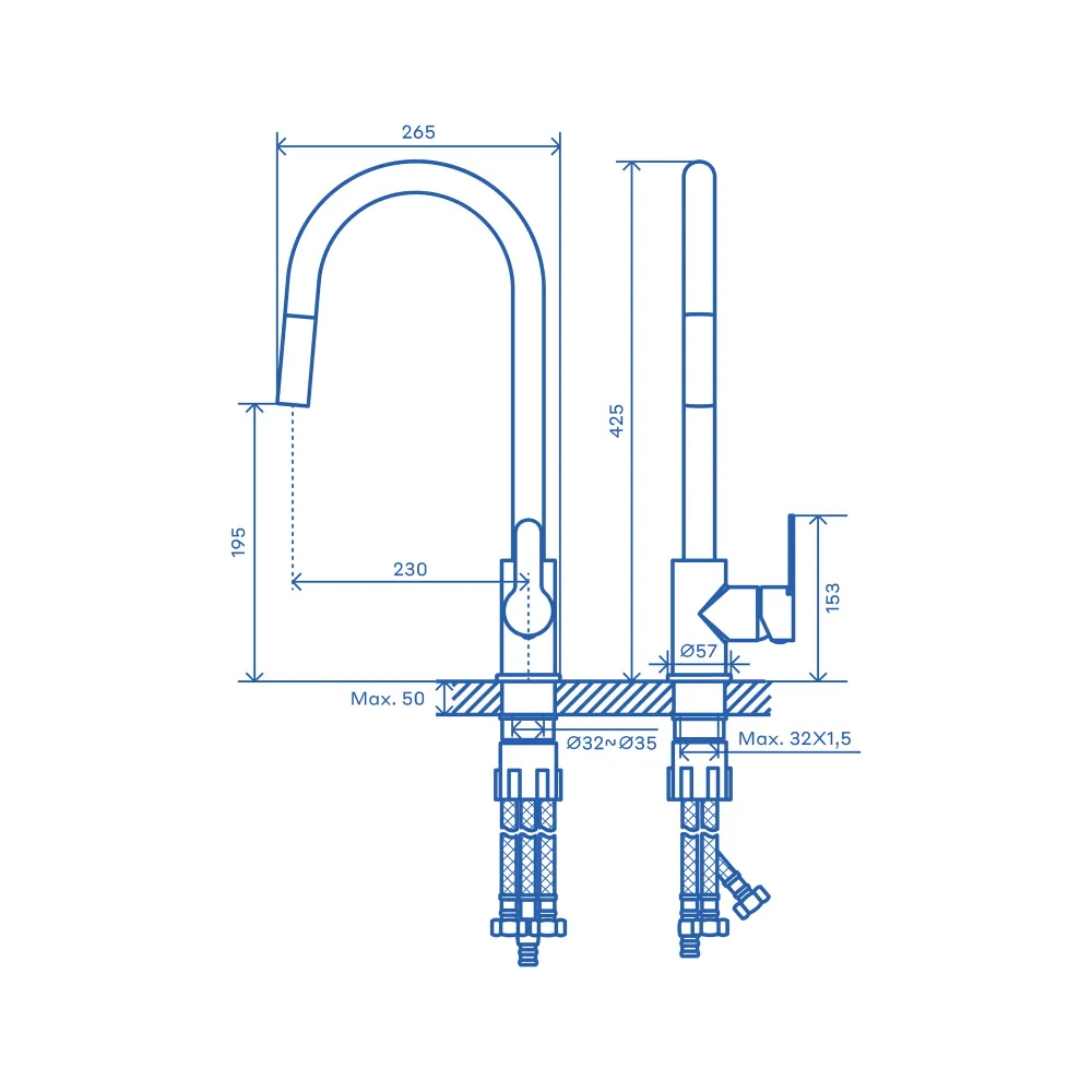 Смеситель оснащен поворотным и выдвижным изливом, что позволяет регулировать направление струи воды и облегчает процесс мытья посуды. Максимальный расход воды составляет 8,9 л/мин.