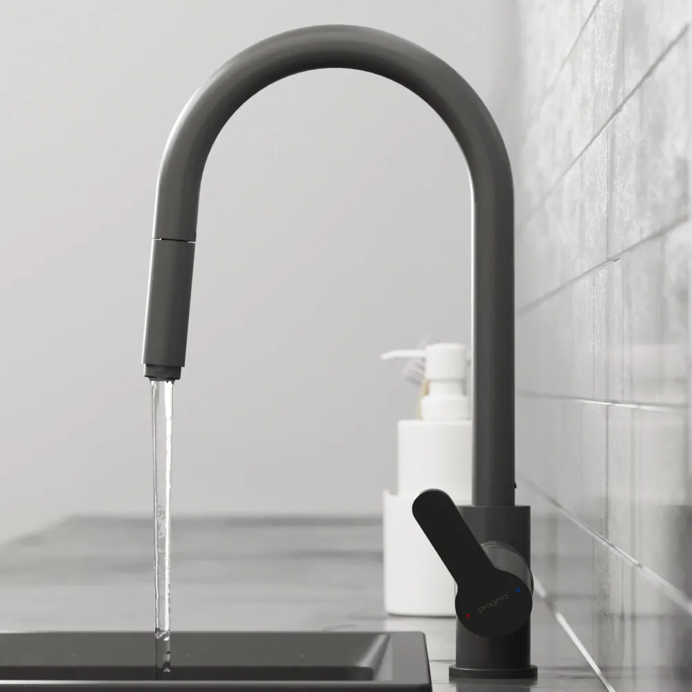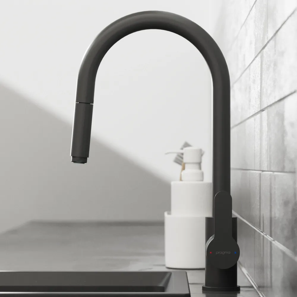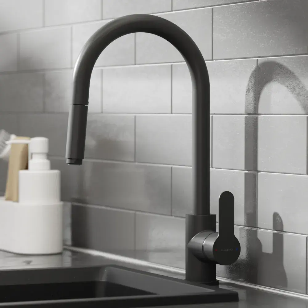 Смеситель для кухни с выдвижным изливом Pragma Melpul - это стильное и функциональное решение для вашего дома. Матовый черный цвет и современный дизайн смесителя подчеркнут интерьер вашей кухни и сделают ее использование еще более комфортным.