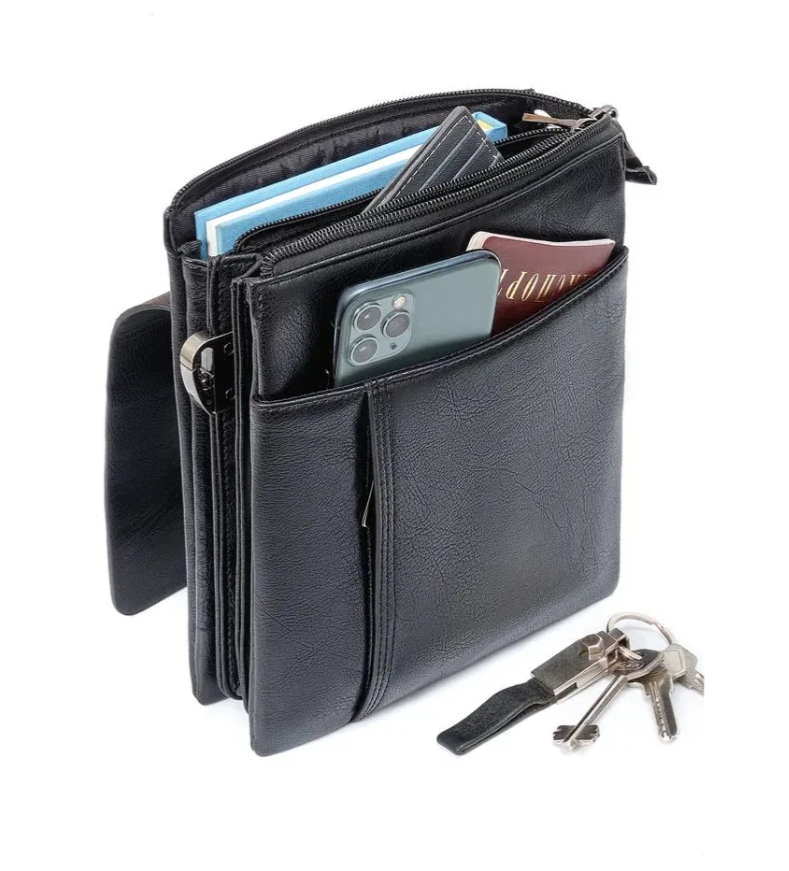 Сумка мужская через плечо высокого качества пошива, имеет ровные строчки и надежную фурнитуру. Мужской мессенджер изготовлен из натуральной кожи и премиум экокожи. Практически полное отсутствие запаха. Имеет 4 отделения внутри и карман сзади, внутреннее отделение на молнии. Черная кожаная сумочка на плечо оснащена регулируемым широким ремнем. Прочная подкладка планшетки из качественного полиэстера легко очищается и прослужит долгие годы.