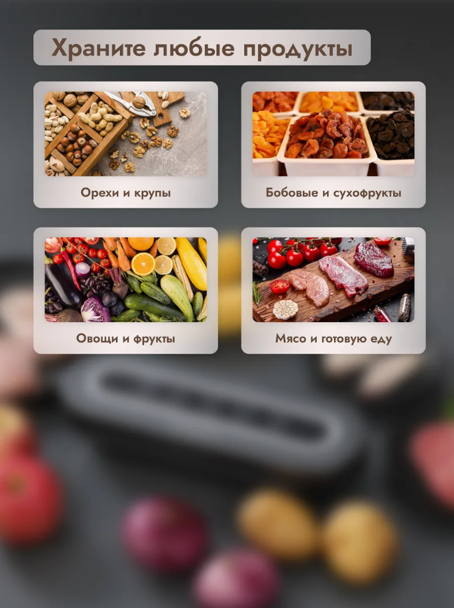 Вакуумный упаковщик - это незаменимая техника для дома и кухни, которая помогает сохранить продукты свежими на долгое время до нескольких недель.