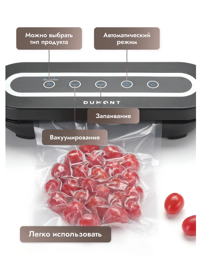 Запайщик пакетов необходим для безопасного и надежного хранения продуктов и еды. После запайки прибором вакуумный пакет не пропускает запахи и из него ничего не протекает. Панель управления вакуумной машинки простая и понятная, предусмотрено 3 режима вакуумирования с двойным швом. Запаиватель пакетов - вакууматор сохраняет вкус и питательные вещества высасывая воздух из пакета.