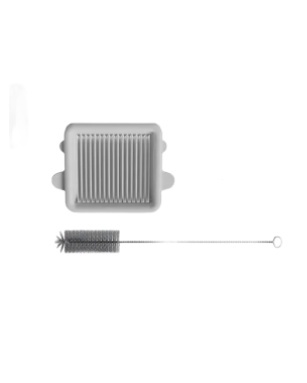 Станция оснащена ершиком для очистки, который позволяет легко и быстро удалять пыль и мусор из труднодоступных мест.